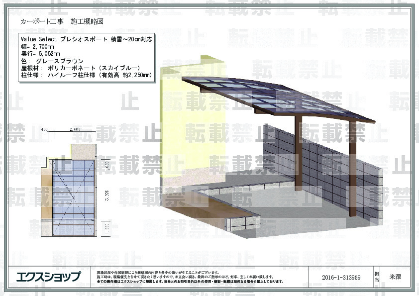 プレシオスポート の施工のご依頼を頂きまして、誠に有り難うございます。お住まいに違和感なく収まりましたチャコールブラックのカーポートはスタイリッシュなお仕上がりでございますね。ポリカーボネート(スカイブルー)の屋根が雨や紫外線を遮り、冬場のガラスの凍結を防ぐものと存じます。プレシオスポートは一流メーカーとのコラボレーションで生まれた弊社オリジナルで、高品質で低価格を実現した商品でございますので、お気に召して頂き、ご愛用頂けますと幸いでございます。これからもお客様満足度100%を目指し、スタッフ一同努力を重ねて参りますので、また機会がございましたら、是非エクスショップにご用命頂きますよう、宜しくお願い申し上げます。