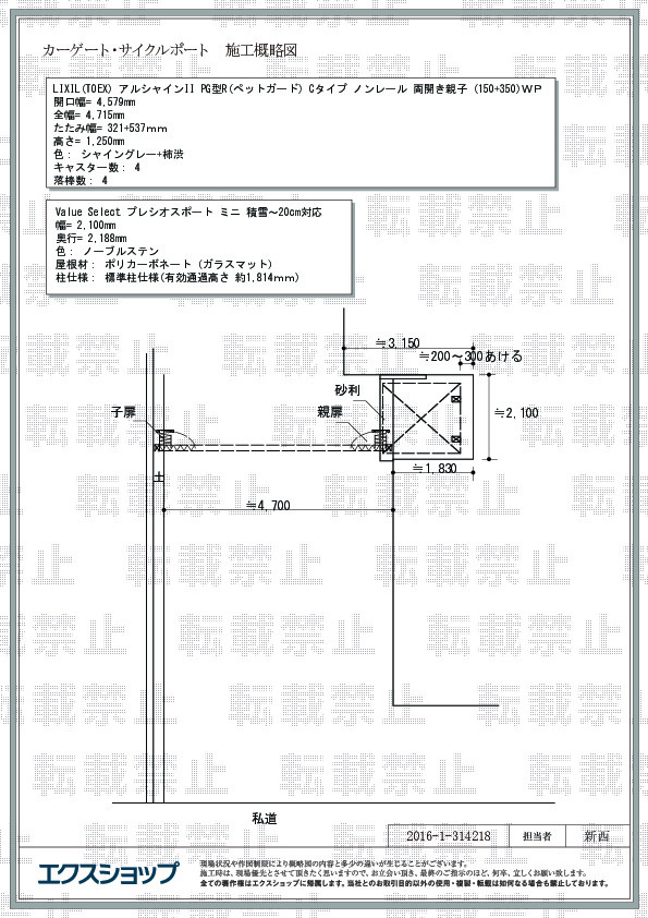 【商品カテゴリ >カーポート】(ご質問No.2268)