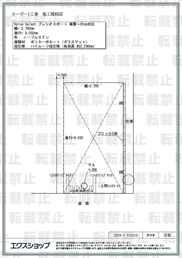 プレシオスポートの施工をご依頼頂き、施工担当者、弊社スタッフの対応にお褒めのお言葉を頂きましたこと、誠に光栄に存じます。ポリカーボネート(ガラスマット)の屋根材は光の透過率が高いので、隣接するお部屋暗くならず、快適にお過ごし頂けるものと存じます。お車に霜が降りるのも防ぎ、冬の朝もスムーズに外出して頂けるものと存じます。今後また機会がございましたら、是非エクスショップにご用命ください。またのご利用を、心よりお待ち致しております。