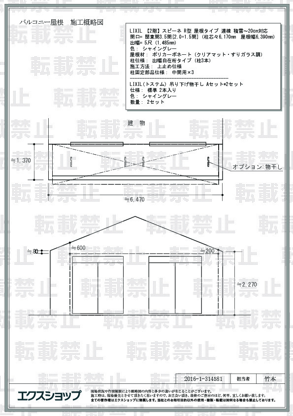 スピーネ R型の施工をご依頼頂きまして、誠に有り難うございます。アール型の屋根が雨の吹き込みをしっかりと防ぎますが、ポリカーボネート(クリアマット・すりガラス調)の屋根材は、光の透過率が高く、お部屋の明るさやお洗濯物の乾きを妨げないものと存じます。これからも、お客様の暮らしがより快適になりますよう、エクステリアの施工を通してお手伝いして参りたいと存じます。また機会がございましたら、是非エクスショップにご用命頂きますよう、宜しくお願い致します。