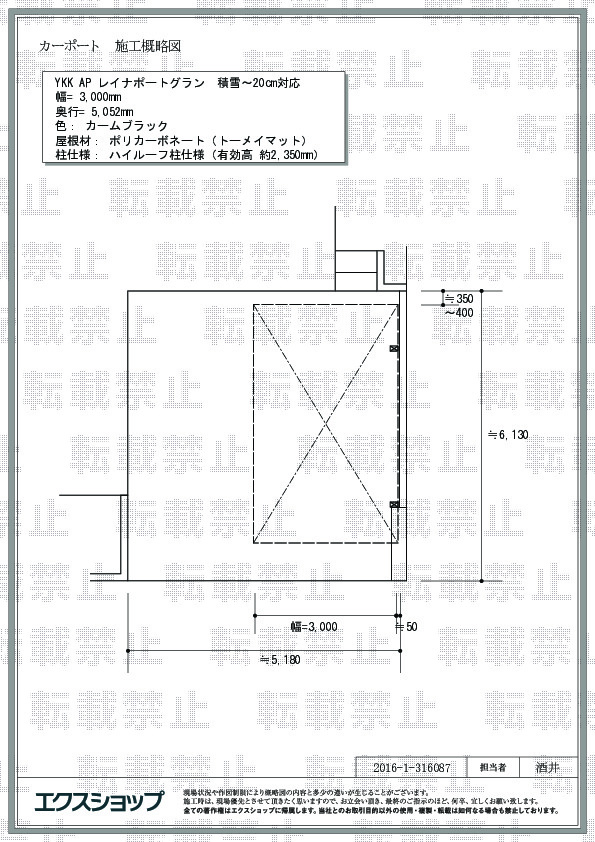 レイナポートグランの施工をご依頼頂きまして、誠に有り難うございます。ネット販売ならではの低価格だけではなく、施工担当者、弊社スタッフの対応、ならびに、施工技術にもご満足のお言葉を頂き、何よりの喜びでございます。シンプルなデザインと透明感のあるポリカーボネート(トーメイマット)の屋根材が調和して、スタイリッシュなお仕上がりでございますね。今後も絶えず企業努力を続け、丁寧にそして迅速に対応できますよう、スタッフ一同、努めて参ります。また機会がございましたら、是非エクスショップにご用命頂きますよう、宜しくお願い致します。