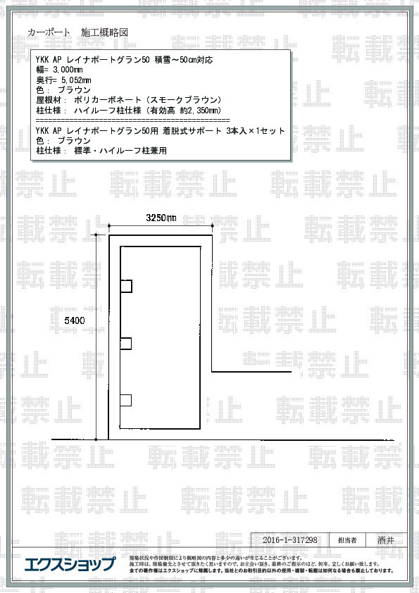現地確認に来られた担当者様から、詳しい商品説明をいただき大変助かりました。具体には、補助支柱は強風による浮き上がりに対する対策で あり、積雪の対策ではないことや貴社がリクシル等との関係が深いことを教授頂きました。また、施工時にも丁寧な対応を頂き助かりました。さらに、当方の都合で施工日が延期にになったにもかかわらず、対応頂き助かりました。感謝です。