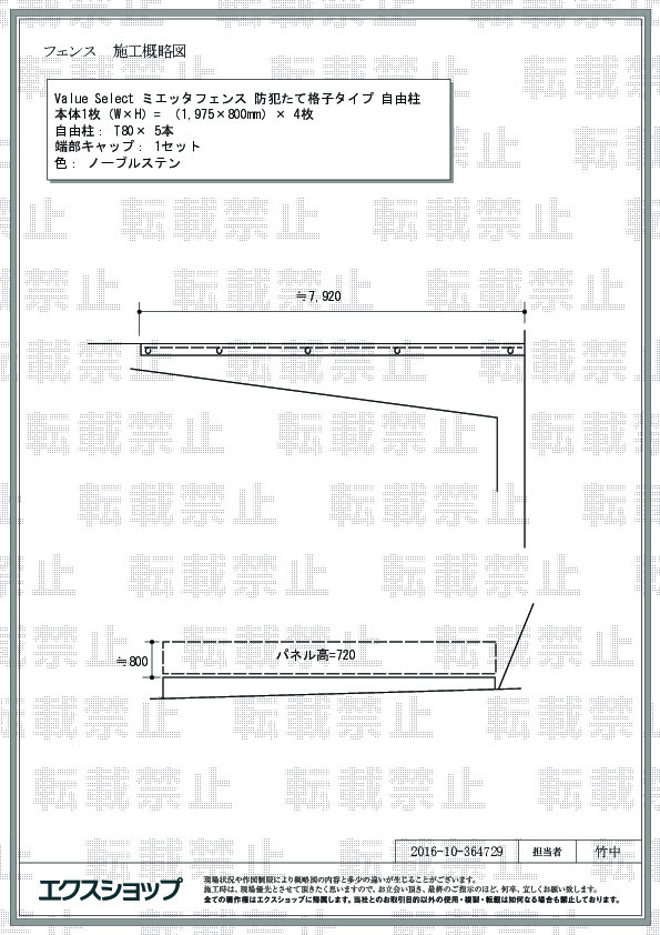 ミエッタフェンス 防犯たて格子タイプ の施工をご依頼頂きまして、誠に有り難うございます。ご自宅の境界線がはっきりして、防犯上、安心してお過し頂けるものと存じます。お手頃な価格のエクスショップオリジナル商品でございますが、機能性、耐久性は一流メーカー品と遜色ございませんので、永くご愛用頂けるものと存じます。また機会がございましたら、是非弊社にご用命頂きますよう宜しくお願い致します。