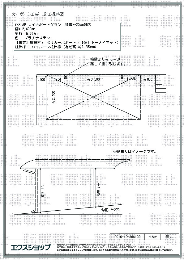 雨が降ると車の汚れが目立っていましたが、設置後は多少は濡れますが設置前に比べると車の汚れが目立たなくなり満足しています。また、ネットショップということで、やはり多少の不安はありましたが、施工にこられた方も礼儀正しくきちっと仕事をして頂き満足しています。今後も、機会があれば、再度エクスショップの利用を検討したいと思います。