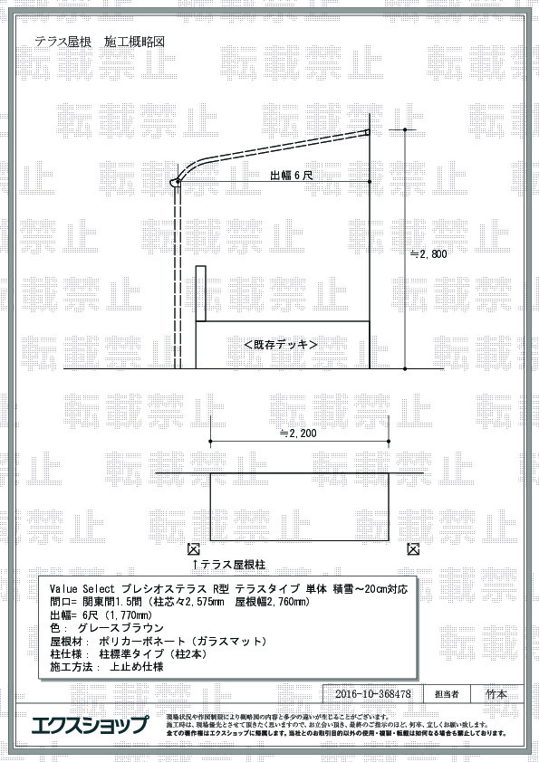 | サイズ | 屋根幅 2,760mm 出幅 1,770mm |