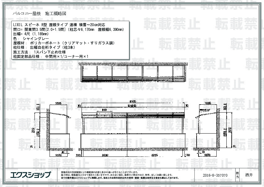 | 柱仕様 | 出幅自在桁タイプ(柱3本) |