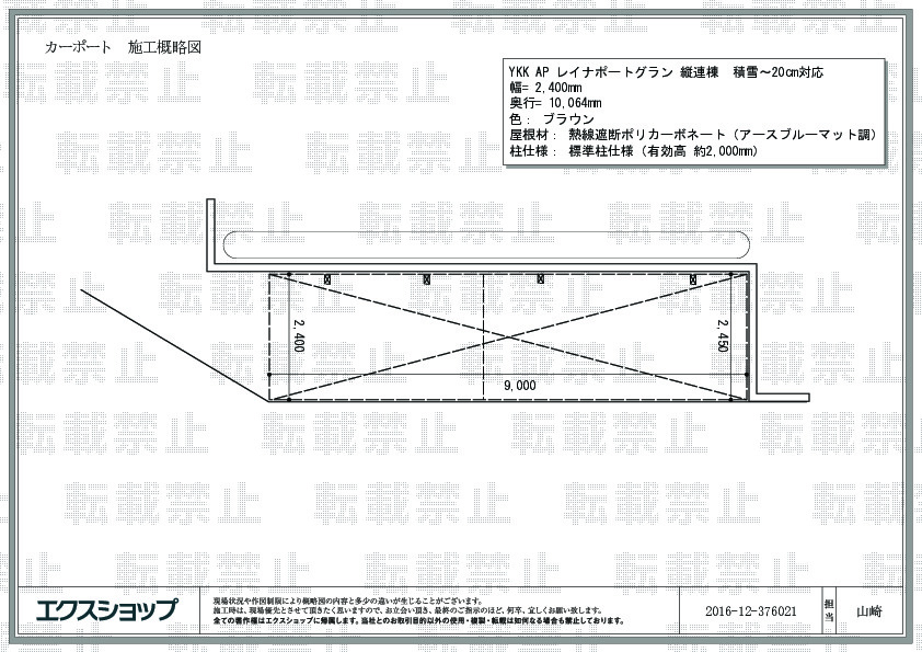 昨年購入した車両は高さが2,250mmあり構造的にルーフには乗れず、洗車がとても大変で苦労していました。現在3連のカーポートはありますが高さが2,400mmの所があり納まりません。高さがクリアーできるカーポートを探した所エクスショップに辿り着きました。価格、保証等説明を聞き、クチコミにも後押しされ決めさせて頂きました。現地調査も準則にして頂き設置も近くの業者様により、2日で完了しました。設置後雨が降りましたが、車両が濡れないため雨垂れ等無くとても満足しております。また機会がありましたらその際は是非お願いしたいと思います。大変有り難う御座いました。