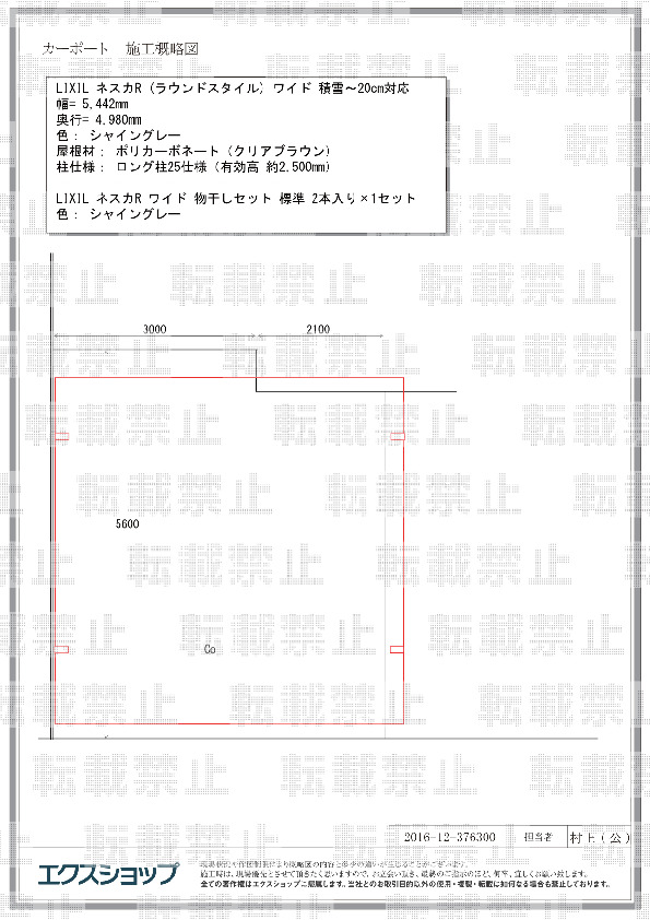 発注から工事までの日程について、担当者様の対応が良く円滑に進めて頂きました。また施工業者さんの対応も良く仕事内容も丁寧で、工事は2日予定でしたが1日で完了しました。今回のカーポート購入に際し、エクスショップさんの対応について、とても満足しております。