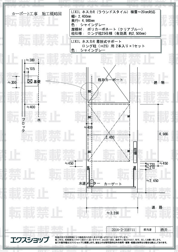 何度か変更があり、そのたびに見積りをお願いしました。でも担当者の方がとてもわかりやすく説明してくださり、親切に対応してくださり、安心して施工をお願いすることができました。工事当日、来てくださった業者の方も手際良くすすめてくれました。また、ご近所への対応も素晴らしかったです。出来上がったカーポートも思ってた以上に満足できるものでした。今回、エクスショップさんにお願いして本当に良かったと思いました。