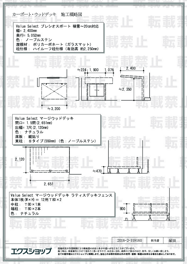 前回のバルコニー屋根の施工にご満足頂き、この度は、プレシオスポートとマージウッドデッキの施工をご依頼頂きましたこと、誠に光栄に存じます。お客様のイメージ通りのお仕上がりとなり、ペットのワンちゃんを含め、ご家族皆様にお喜び頂いているものと存じます。雨や直射日光が遮られ、自転車の傷みや汚れが軽減されるものと存じます。これからも、エクスショップをご利用頂いた、全てのお客様に、安心と満足をお届けすることが出来ますよう、日々精進して参りたいと存じます。またのご利用を、心よりお待ち申し上げております。