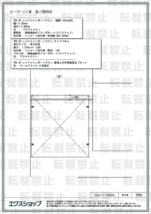 レイナツインポートグランの施工をご依頼頂きまして、誠に有り難うございます。なかなかイメージの掴みにくい大型のエクステリアの施工でございますので、ホームページの「施工例」や「お見積りシミュレーション」をご活用頂き、安心してご依頼頂きたいと考えております。『大体こんな感じになるのかなどイメージすることができました』との感想を頂き、大変嬉しく存じます。熱線遮断ポリカーボネート(クリアマット)の屋根が敷地を大きく覆い、頼もしい存在でございますね。今後もより良いシステムを構築しお客様にお喜び頂けるよう努めて参ります。また機会がございましたら是非、弊社をご用命頂きますよう、宜しくお願い致します。