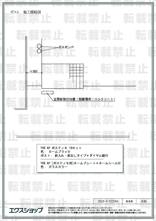 新築でまだポストを取り付けてなかったため、エクスショップで購入しました。担当された施工店はとても良い担当者で工事も見ていてとても信頼できる方でした。