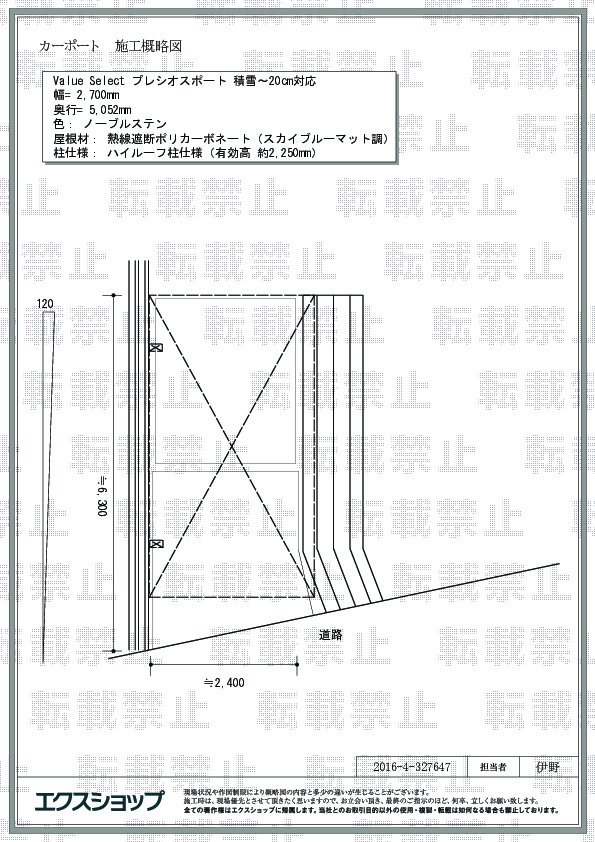 プレシオスポートの施工をご依頼頂きまして、誠に有り難うございます。現場調査が至らず、ご迷惑をお掛け致しましたこと、心よりお詫び申し上げます。ご心配をお掛け致しましたが、カーポートが綺麗に納まり、また、弊社スタッフや施工担当者にお褒めのお言葉を頂きましたこと、大変嬉しく存じます。今後は、現場調査の際の確認を怠らず、正確な現場調査を行いますよう、提携施工店にも厳しく指導して参ります。また、機会がございましたら、エクスショップにご用命頂きますよう宜しくお願い致します。