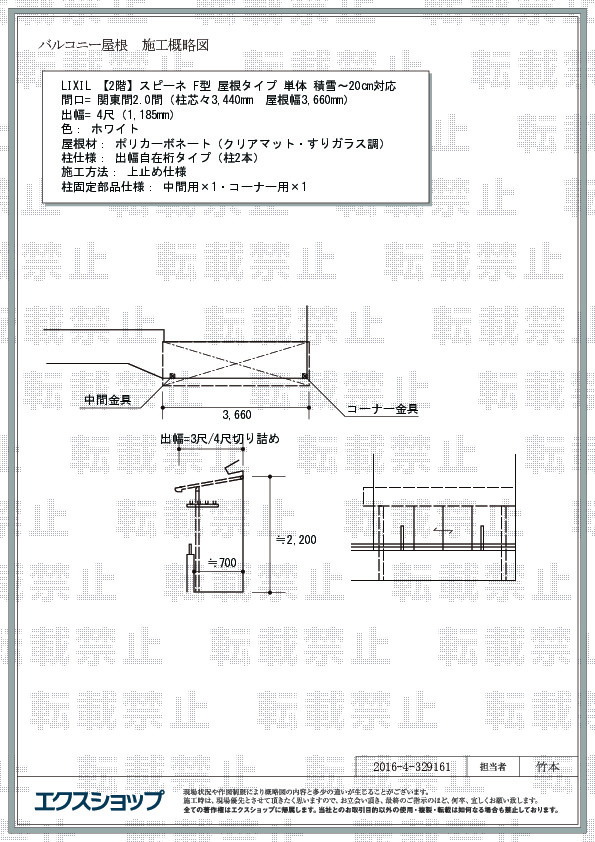 | サイズ | 屋根幅 3,660mm 出幅 1,185mm |