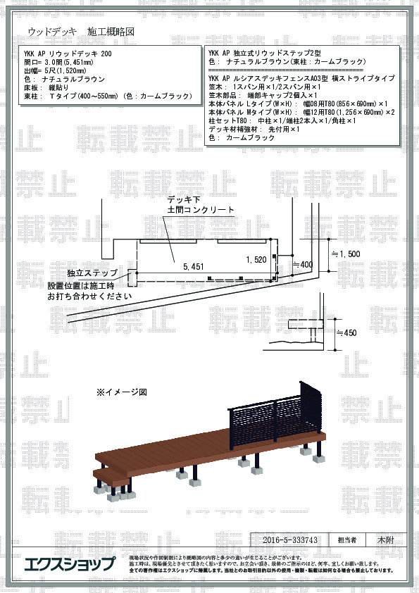 | サイズ | 間口 5,451mm 出幅 1,520mm |