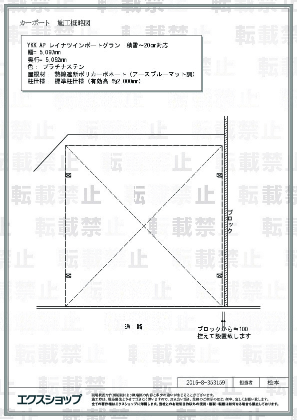 レイナツインポートグランの施工をご依頼頂き、施工までの対応や、施工技術にご満足のお言葉を頂きましたこと、誠に光栄に存じます。熱線遮断ポリカーボネート(アースブルーマット調)のアーチ状の屋根がお車を優しく包み込むようなお仕上がりでございますので、雨や直射日光が遮られ、いつでも美しく保つことが出来るものと存じます。これからも、お客様のご期待を裏切らないよう精進して参りますので、また機会がございましたら、是非エクスショップをご利用して頂きますよう、宜しくお願い致します。
