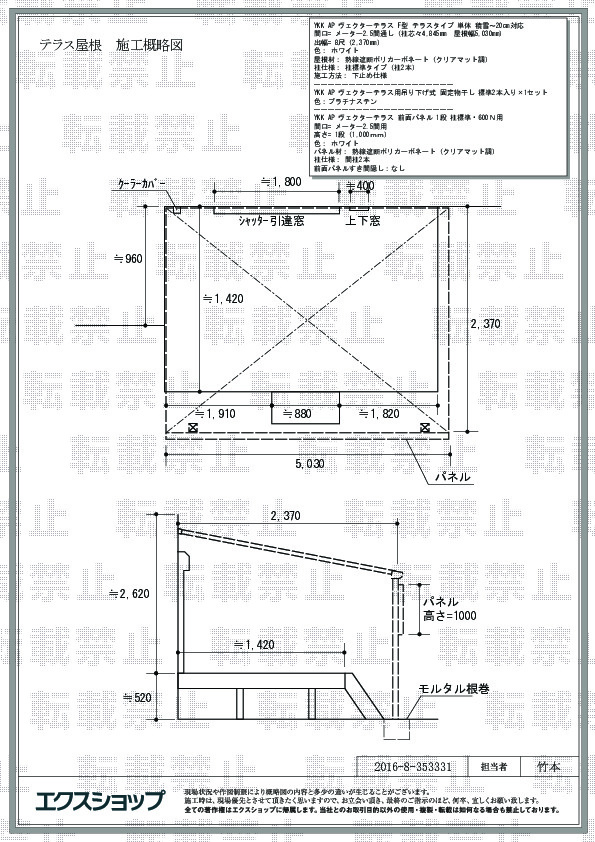 | サイズ | 屋根幅 5,030mm 出幅 2,370mm |