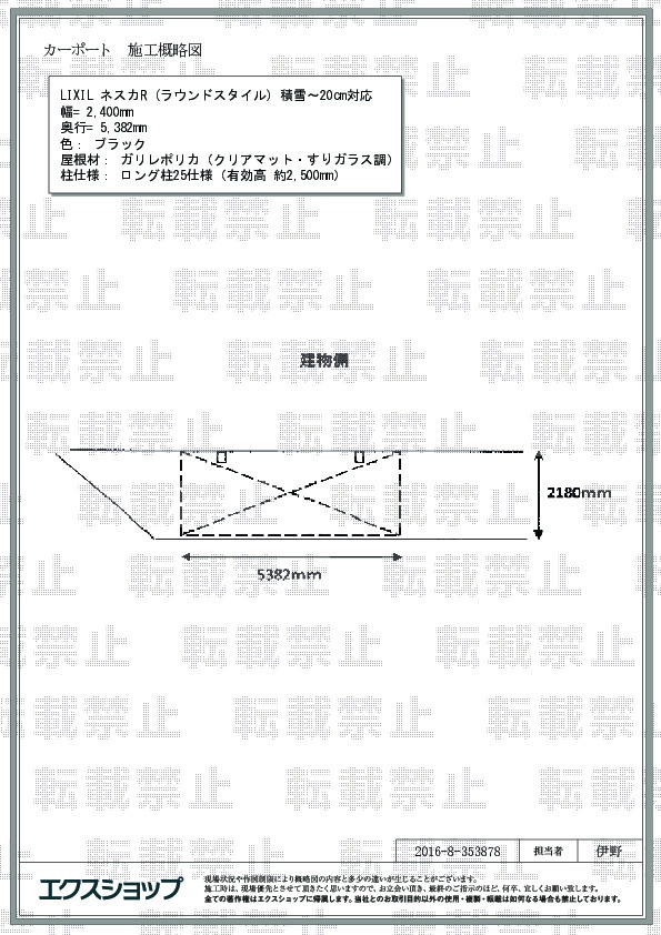 この度は、カーポートの施工をご依頼頂きまして、誠に有り難うございます。ブラックのお色でスタイリッシュなお仕上がりでございますね。日差しや雨を遮りますので、一年を通して快適にお車に乗り降りして頂けることと存じます。せっかく弊社をお選び頂きましたのに、部材についてのご説明が不足し完成が遅れてしまいまして、誠に申し訳ございません。またその後の原因説明も不足しておりましたこと、重ねてお詫び申し上げます。今後このようなことがないよう、お客様のお声を真摯に受け止め更なるサービス向上のため精進して参る所存でございます。またの機会がありましたら、是非エクスショップをご利用下さいますよう、宜しくお願い致します。
