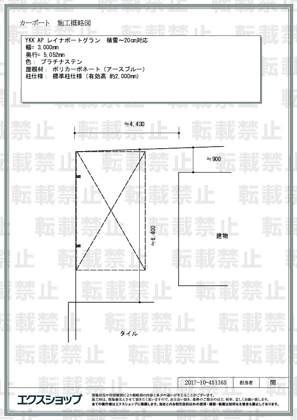 昨年購入した車両は高さが2,250mmあり構造的にルーフには乗れず、洗車がとても大変で苦労していました。現在3連のカーポートはありますが高さが2,400mmの所があり納まりません。高さがクリアーできるカーポートを探した所エクスショップに辿り着きました。価格、保証等説明を聞き、クチコミにも後押しされ決めさせて頂きました。現地調査も準則にして頂き設置も近くの業者様により、2日で完了しました。設置後雨が降りましたが、車両が濡れないため雨垂れ等無くとても満足しております。また機会がありましたらその際は是非お願いしたいと思います。大変有り難う御座いました。