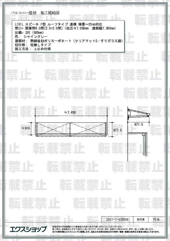 | サイズ | 屋根幅 7,300mm 出幅 885mm |