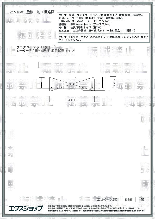 | サイズ | 屋根幅 4,030mm 出幅 1,170mm |