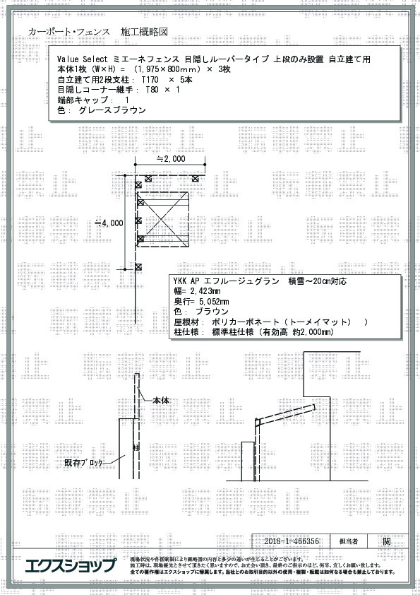 この度は、カーポートとフェンスの施工をご依頼頂きまして、誠に有り難うございます。いずれもブラウン系のお色をお選び頂きましたので、統一感があって後付けとは思えない仕上がりでございますね。『予想以上の出来栄えに満足です』とのお言葉、光栄でございます。末永くご愛用頂ければ幸いでございます。これからもお客様にご満足頂けるよう社員一同努めて参ります。またの機会がありましたら、是非エクスショップをご利用下さいますよう宜しくお願い申し上げます。