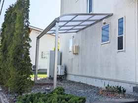 最初は、横幅を狭く考えてましたが、業者さんの下見のさいに、ご助言頂き、幅を広げました。それがとても良かったです。見た目が良くなって満足しておりますし雨のふりこみも少ないです。屋根の色合いも明るくて気に入りました。