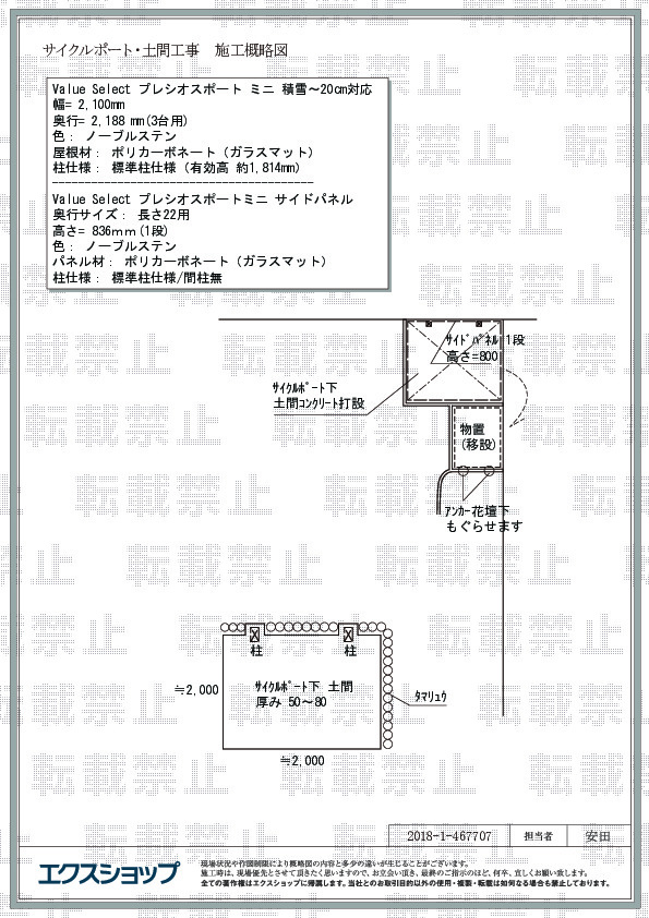 この度は弊社でプレシオスポート ミニの施工のご依頼を頂きまして、誠に有り難うございます。敷地内の花壇横のスペースに、サイクルポートがスッキリと収まり、輝くノーブルステンのフレームは明るいお仕上がりでございますね。自転車を汚れや傷みから守り、天候を気にする事なく、快適に駐輪して頂けるものと存じます。これからもお客様のご要望に適った施工の提案が出来るよう、スタッフ一同日々精進して参りますので、また機会がございましたら、是非エクスショップにご用命頂きますよう、宜しくお願い申し上げます。