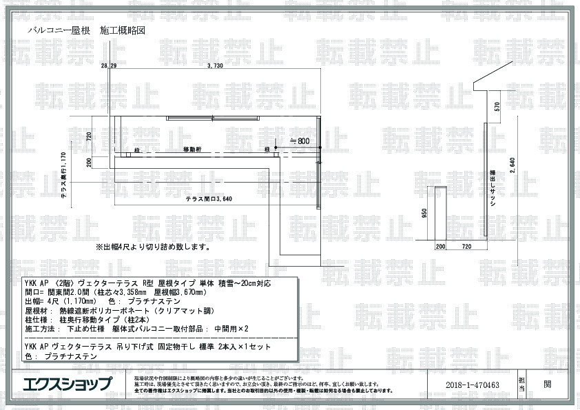 サイズ | 屋根幅 3,670mm 出幅 1,170mm |