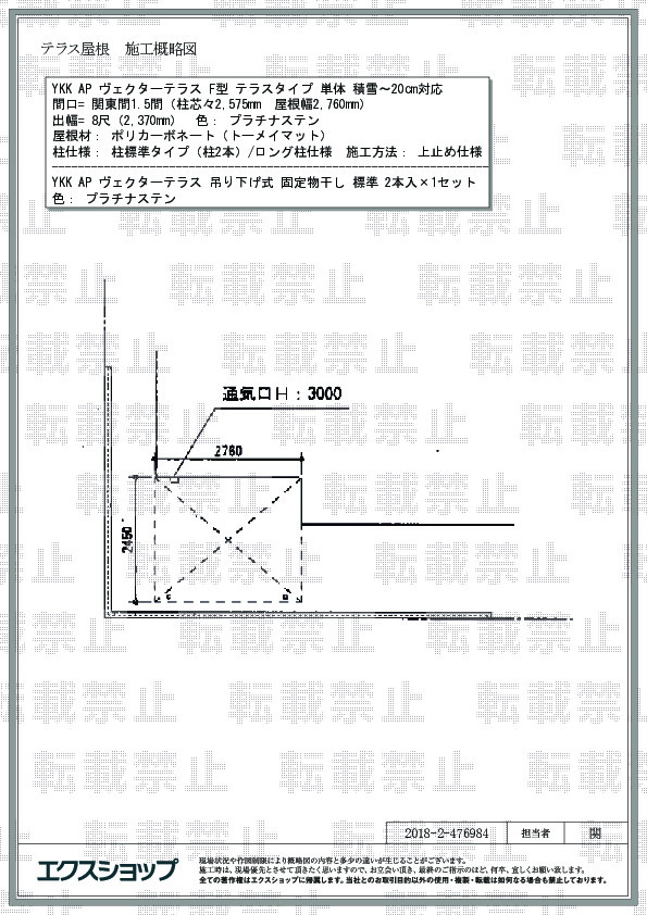 サイズ | 屋根幅 2,760mm 出幅 2,370mm |