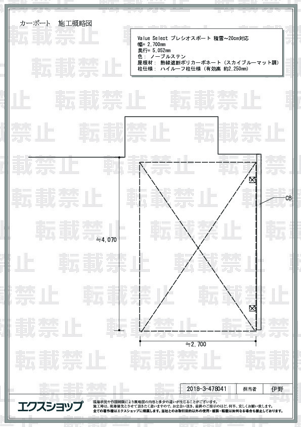 この度は、カーポートの施工をご依頼頂きまして、誠に有り難うございます。一流メーカーと、弊社のコラボ商品でございますプレシオスポートは、シンプルなデザインでお手頃な価格ではございますが、機能性・耐久性に優れております。お気に召して頂き、永くご愛用頂けましたら幸いでございます。今後も、エクステリアの施工を通してお客様に笑顔をお届け出来ますよう、日々精進して参ります。また機会がございましたら、是非エクスショップにご用命頂きますよう宜しくお願い致します。