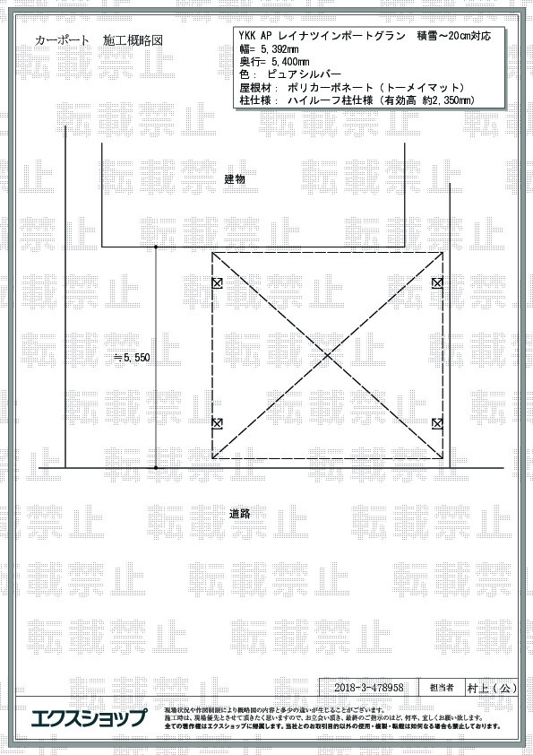 この度は、レイナツインポートグランの施工をご依頼頂きまして、誠に有り難うございます。明るく開放感のあるカーポートがお住まいに綺麗に納まりましたこと、私共も嬉しく存じます。雨や日差しを遮ったり鳥の糞などの飛来物から守ったりと一年を通して活躍してくれることと期待しております。霜取りの手間も減りますので、これまで以上にお車に快適に乗り降りして頂けることと存じます。これからもお客様にご満足頂けるよう社員一同精進して参ります。またの機会がありましたら、是非エクスショップをご利用下さいますよう宜しくお願い申し上げます。