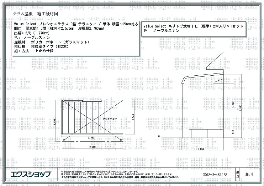 | サイズ | 屋根幅 2,760mm 出幅 1,770mm |