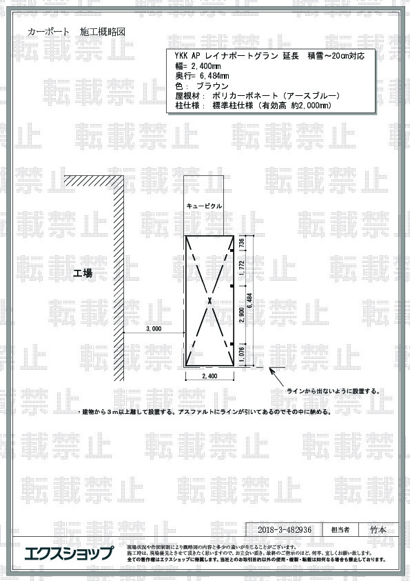 再度、レイナポートグラン 延長タイプの施工をご依頼頂いまして、誠に有り難うございます。片側支柱のカーポートは、自転車やバイクの出し入れがスムーズで、更に、専用にご使用頂くことで、より効率よく収納して頂けるものと存じます。今後また機会がございましたら、是非エクスショップにご用命ください。またのご利用を、心よりお待ち致しております。