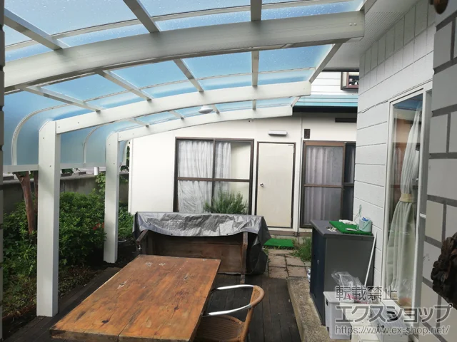 カーポートとしてではなく、庭の屋根として設置しました。当地は積雪地なので、積雪対応の片流れを選びましたが、柱、梁も満足しています。サイズも大きくなったので軒に被す事ができ、使いやすくなりました。