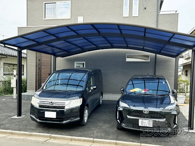 この度はアリュース ツインの施工をエクスショップにお任せ下さり、誠にありがとうございます。カームブラックとアースブルーの組み合わせが、重厚感がありとても素敵なお仕上がりですね。熱線遮断ポリカーボネートが有害な紫外線をカットし、夏の車内温度の不快感や、冬のガラス凍結を防止して快適にお使い頂けるものと存じます。屋根のあるスペースが増えることで、お車の駐車だけでなく様々な用途でご活用頂けますので、T様ご家族にも長くご愛用頂けますと幸いです。今後も安心して施工をお任せ頂けるよう精進して参りますので、また機会がございましたら是非エクスショップにご用命下さいませ。心よりお待ち致しております。