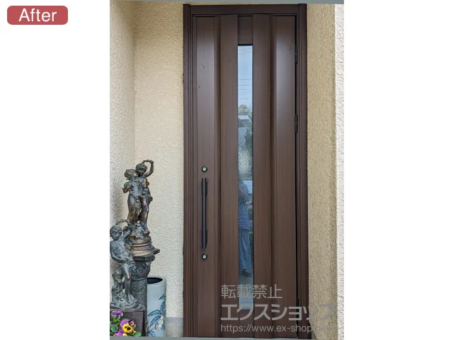 この度は、ドアリモ玄関ドア C04N型の施工をエクスショップにお任せ下さり、誠にありがとうございます。ご自宅の顔である玄関ドアが一新され、お家全体の雰囲気も更に良くなったのではないでしょうか。従来のドアより断熱性や開閉のスムーズさが向上したかと存じますので、快適にお使い頂けておりましたら幸いです。今後も、安心してお任せ頂けるよう精進して参りますので、また機会がございましたら是非弊社にご用命下さいませ。心よりお待ち致しております。