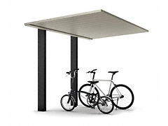 プレーンルーフ ミニ 600タイプ 単体セット ツートーンは”人に寄り添う”をコンセプトに誕生したツートーン仕様のシンプルサイクルポート(駐輪場)です。勾配が3°・厚みが40mmのフラット屋根で、基準風速Vo=40m/s・耐積雪性能20cm相当があります。自転車は約3〜8台収容可能です。