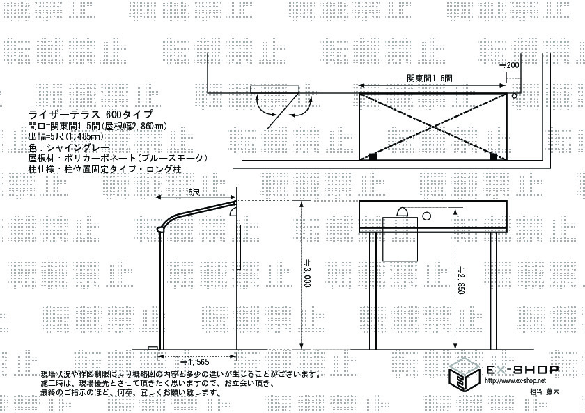 | サイズ | 屋根幅 2,860mm 出幅 1,485mm |