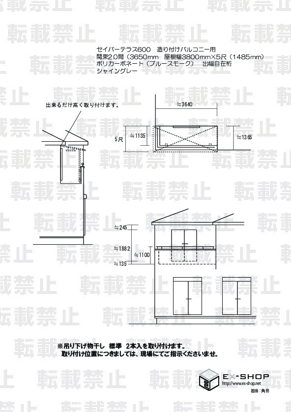 サイズ | 間口 3,650mm 出幅 1,485mm |