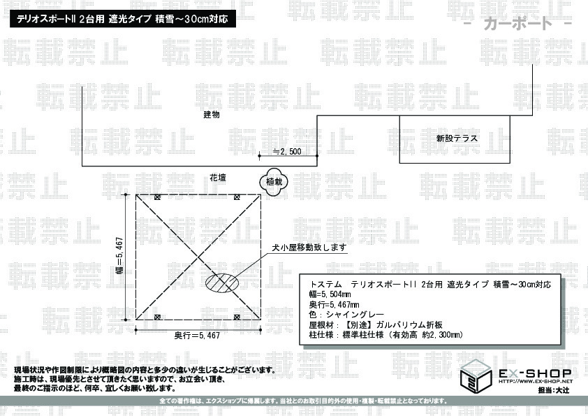 | 屋根高等 | 標準柱仕様(有効高 約2,300mm) |