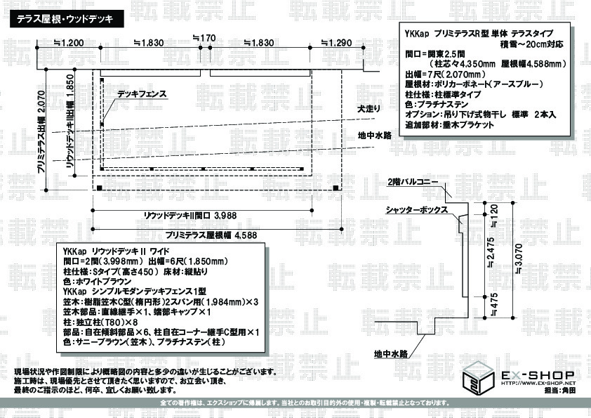 サイズ | 屋根幅 4,588mm 出幅 2,070mm |