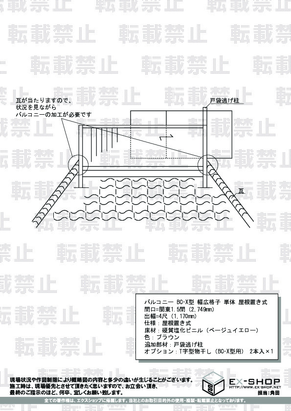 ルシアスバルコニー 屋根置式 たて格子 単体