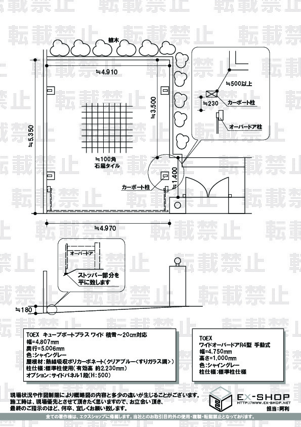 TOEX ワイドオーバードアR1型 ハイルーフ電動タイプ 5400x1000
