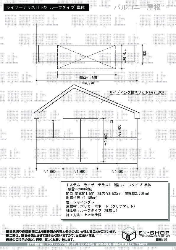 サイズ | 屋根幅 2,750mm 出幅 1,185mm |