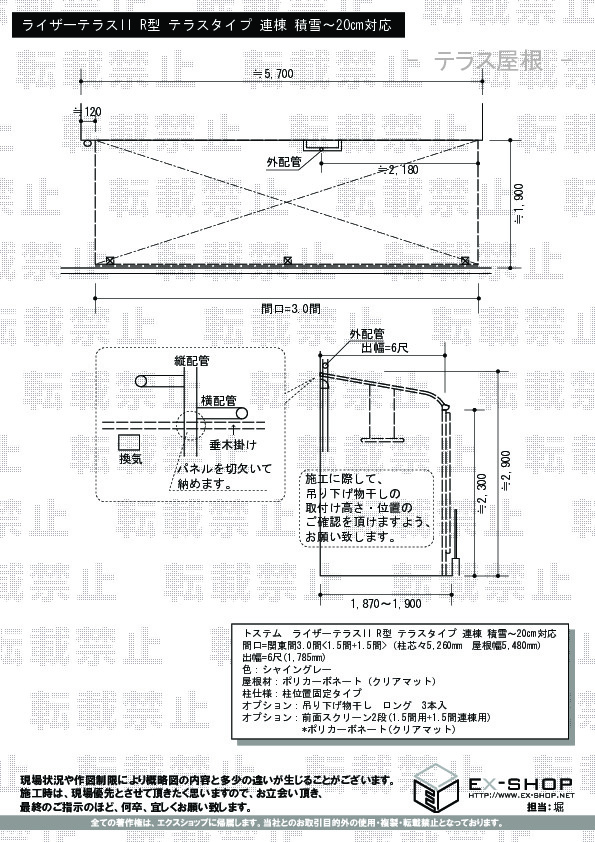 サイズ | 屋根幅 5,480mm 出幅 1,785mm |