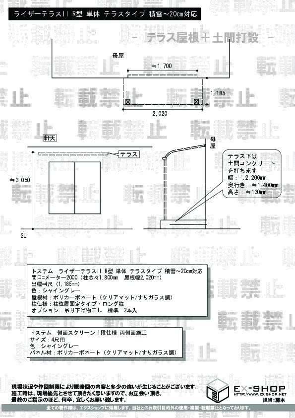 | サイズ | 屋根幅 2,020mm 出幅 1,185mm |