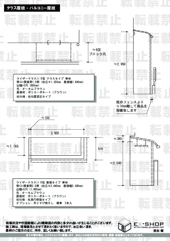サイズ | 屋根幅 3,660mm 出幅 1,465mm |