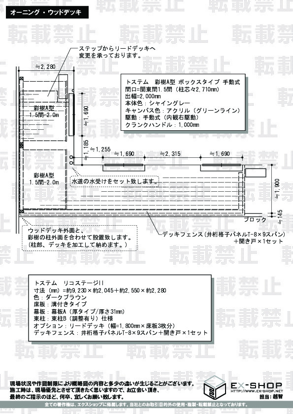 サイズ | 柱芯々 2,710mm 出幅 2,000mm |
