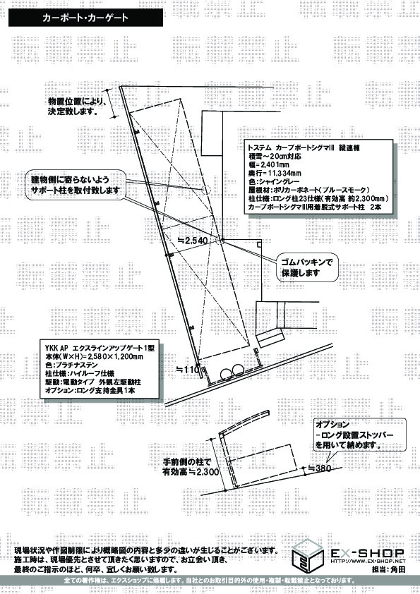 カーポートとカーゲートの交換をしたいのですが、どのような商品が最適か提案をいただきたく、調査と打合せをお願いいたします。